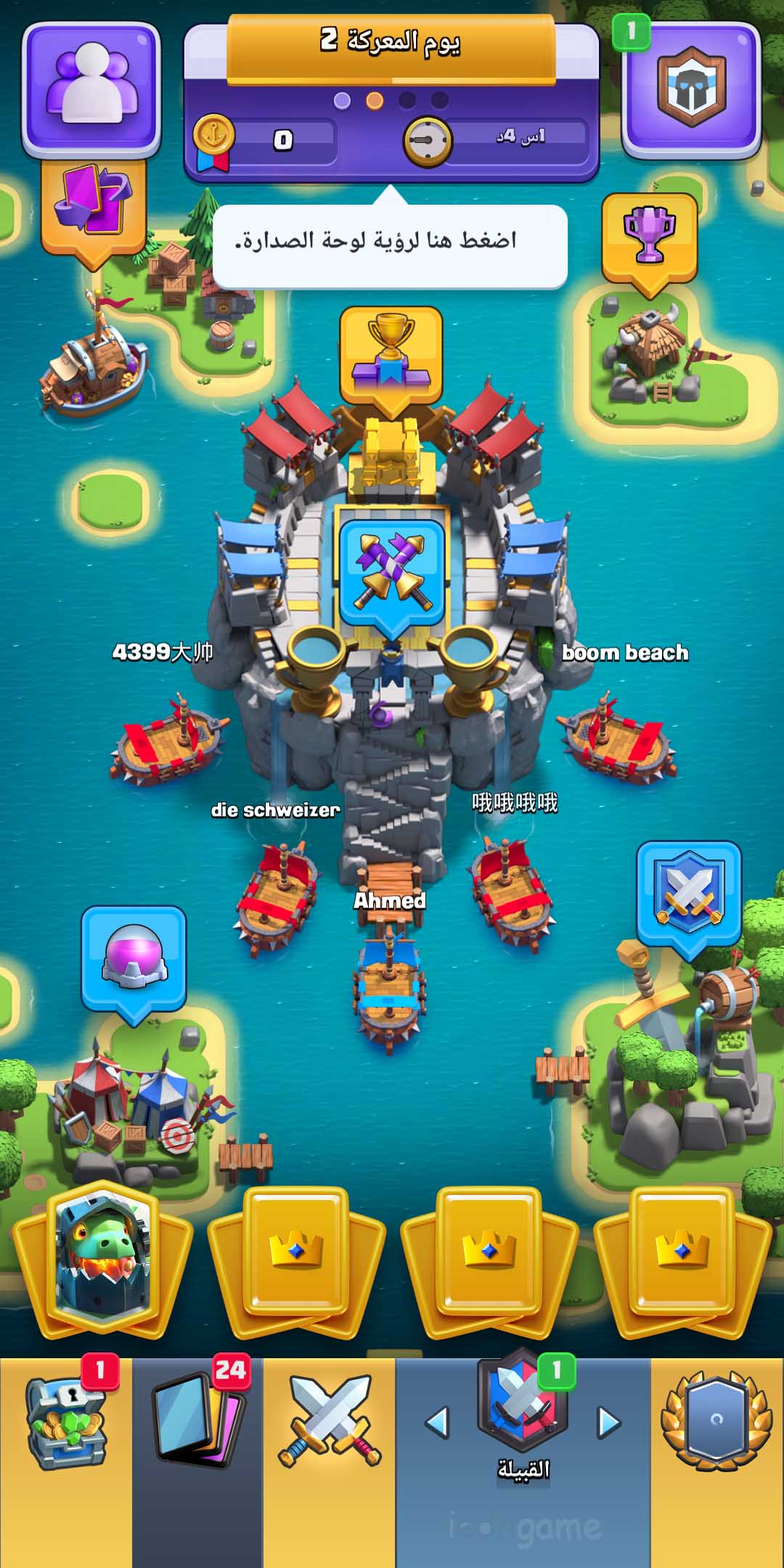 معنا اليوم لعبة كلاش رويال لعبة الصدام الملكي اللعبة تحكي عن فريقين ولاعبين وكل لاعب معه أبطاله والكروت التي سيلعب بها في مواجهة اللاعب الأخر ويرمي كل لاعب ورقة البطل الذي يريد وكذلك اللاعب الأخر وعلي كل لاعب أن يحطم البرجين للمنافس والحصن الذي يوجد به الملك أو علي الأقل يوقع عدد أبراج أكثر من المنافس حتي يربح أما إن وقع حصن الملك تنتهي اللعبة ويخسر المنافس ولكن في العادة تضرب الأبراج أولاً لأن تحطيم الحصن سيكون صعب جداً بوجود برجين يقومان بالهجوم علي الأبطال والكروت التي تلعب بها لكل كرت وبطل مجموعة من الوحدات المطلوبة لكي تستطيع إستدعائه للقتال فلذا عليك أن تكون حكيما في إستخدام تلك الوحدات بالمعركة الوحدات تنتج بشكل منتظم كل عدة ثواني فلا تهدرها إلا علي كروت وأبطال تستطيع الفوز بهم لكل ظرف ولكل موقف هناك بطل أو أكثر مناسب لهذا الموقف أكثر من الكروت الأخري لذا عليك أن تختار تشكيلة قوية ومتنوعة من الكروت والأبطال التي سوف تحارب بهم عندما تدخل المعركة عليك أن تحدد 8 كروت وأبطال لكي تحارب بهم بشكل إفتراضي إلا إن أردت تغيير تلك التشكلية عليك ترقية الكروت والأبطال المميزين خصوصاً الأبطال التي تعتمد عليهم بشكل أساسي فعليك ترقيتهم لأعلي وأقصي مستوي ممكن لتستطيع تحقيق الفوز بهم عليك تقبل الهزيمة ومحاولة النصر فهناك من هم أبرع منك وهناك من هم دون ذلك فقد تفوز ببعض المباريات وقد تهزم ببعضها اللعبة مجانية ويمكنك تحميلها من متجر جوجل بلاي أو من متجر أبل للأيفون بشكل مجاني بدون أية مشكلات أو عقبات اللعبة من الألعاب الأونلاين أي من الألعاب التي تحتاج لوجود إنترنت اللعبة ليست بها أي إعلانات مزعجة نهائياً لذا إلعبها وأنت مطمئن من إزعاج الإعلانات اللعبة ممتعة ومميزة ومن الألعاب المشهورة جداً والمحببة لدي كثير من الناس ستجد بها لاعبين كثر جداً من كل جنسيات العالم اللعبة بها نظام التحالفات والعشائر عليك أن تنضم لعشيرة أو تحالف لكي تشارك بفاعليات التحالفات والعشائر والأن لن أطيل عليك أكثر وأتركك مع بعض الصور من داخل تلك اللعبة الممتعة